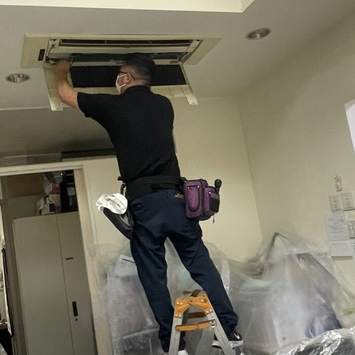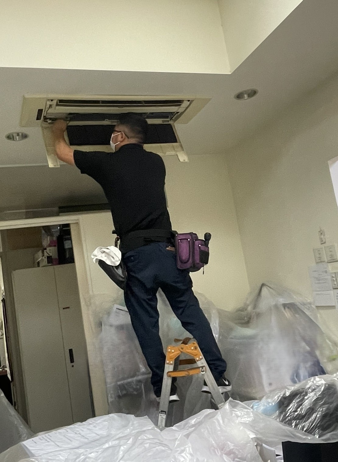 埼玉県越谷市|事務所天井埋込型エアコン分解洗浄